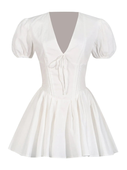 Butterfly V-Neck Puff Sleeve Mini Dress