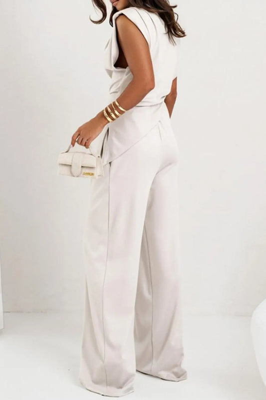 Collared Neck Cap Sleeve Top and Pants Set